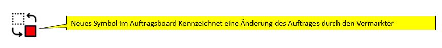 Es gibt ein neues Symbol zur Kennzeichnung von Veränderungen im Auftrag durch den Vermarkter, z. B. nachträgliche Änderung der Bestellmenge, Lieferdatum, Lieferpreis, Stornos. Veränderte Auftragspositionen werden dann wie gewohnt im Änderungsfeld rot markiert.