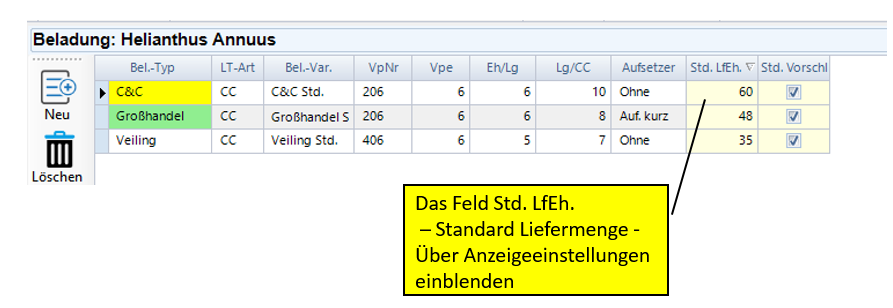 - Standard Liefermenge wird jetzt in der Beladungsvariante eingetragen