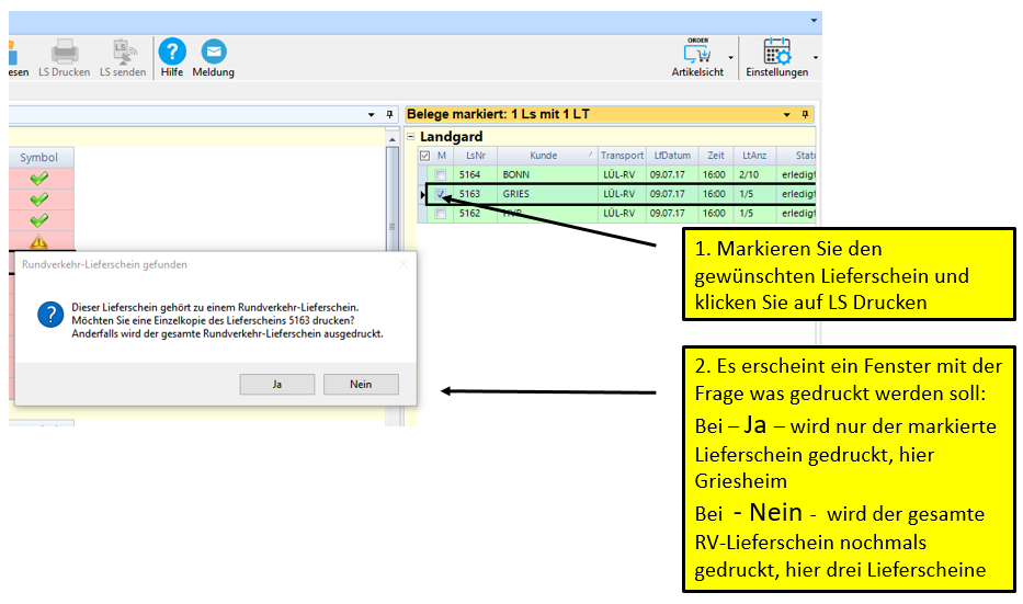 Lieferschein Rundverkehr für einen Markt nachdrucken