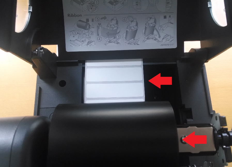 Richten Sie auch im Druckerinneren die Etikettenbahn linksbündig