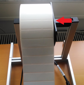1. Richten Sie die Etikettenrolle auf dem externen Rollenhalter nach