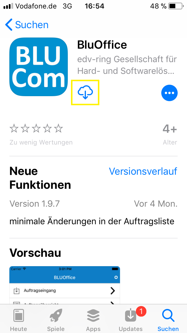 Laden Sie sich die BLUCom App aus dem jeweiligen Store Ihres Anbieters auf Ihr Smartphone. Der Download und die Installation der App sind kostenlos möglich, für die Verbindung mit Ihrem BLUOffice-System ist jedoch eine gültige Lizenz erforderlich. Diese wird nicht über den Store oder Ihre Mobilfunkrechnung abgerechnet, sondern Sie bekommen von uns eine reguläre Rechnung.