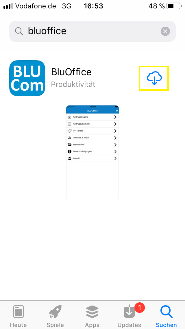 - eine gültige Lizenz für die BLUOffice App (kann per Mail oder Fax bestellt werden)