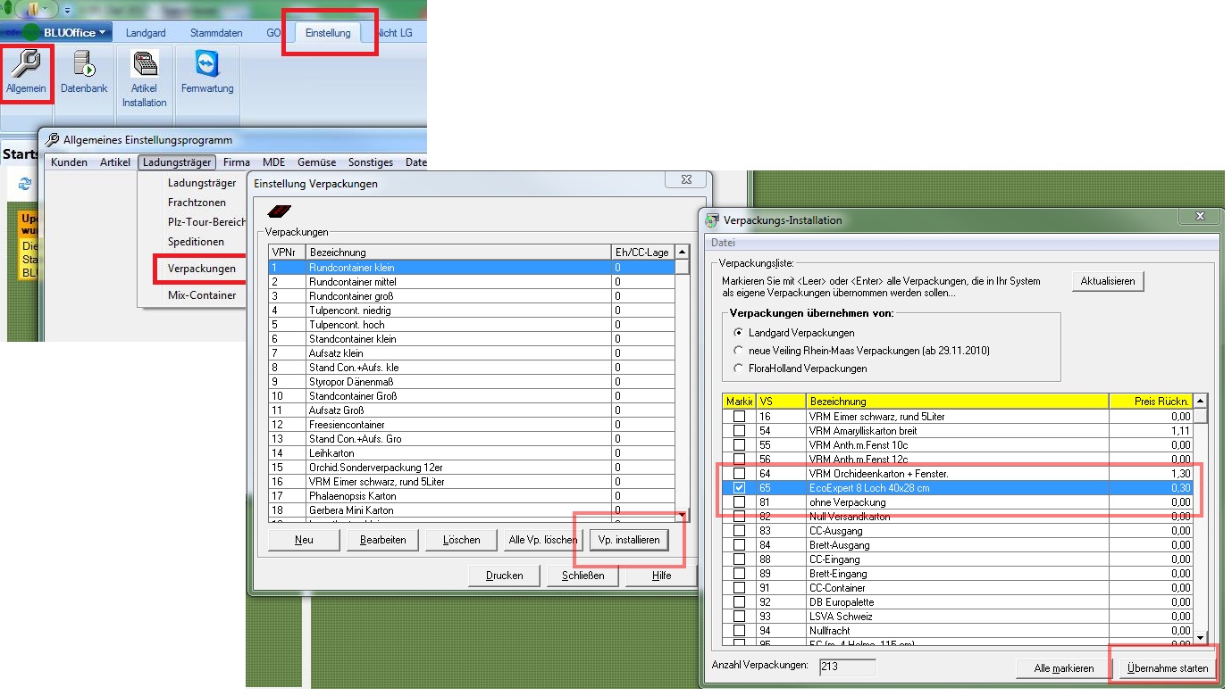 Um eine neue Verpackung von Landgard zu übernehmen, wählen Sie im Programm unter dem Reiter Einstellung den Punkt Allgemein. Es öffnet sich das Programm Allgemeine Einstellungen.