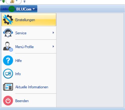 Starten Sie wie gewohnt BLUCom und gehen Sie oben links auf das edv-ring Logo um die Einstellungen zu öffnen.