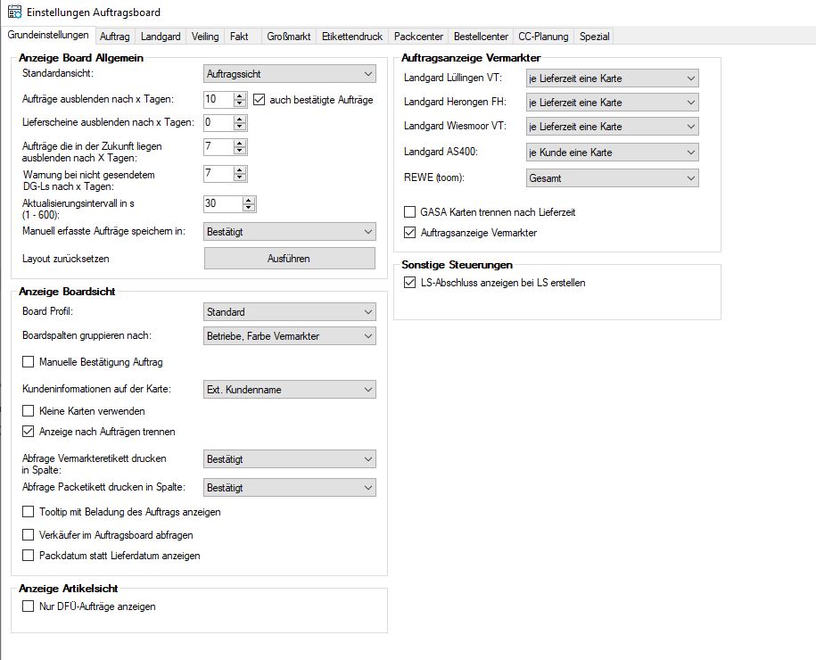 Es öffnet sich nun ein Fenster mit den Auftragsboard-Einstellungen.